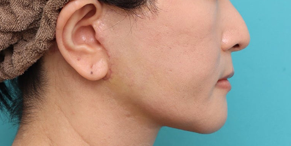 切開は耳たぶの付け根で行い、極細のカニューレが挿入できる最小限の大きさです。このため、傷跡もほとんど目立ちません。
