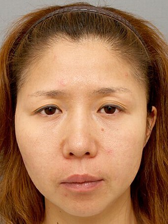 ポニーテールリフト(小切開こめかみリフト)でたるみを改善された方。リフトアップ効果で、下がり気味だった眉毛や目が引き上げられ、顔立ちにメリハリが出ました。またあごなどのフェイスラインもくっきり。手術前より小顔に見えます。