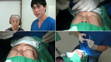 切開する皮膚、たるみのある範囲全体に、極細の注射針を使って局所麻酔の注射をします。
