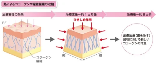 サーマクールFLXRF高周波エネルギーシステムは、肌の奥深くに高周波の電気的な熱エネルギーを加え、コラーゲンの生成を促進して皮膚を美しくする治療です。