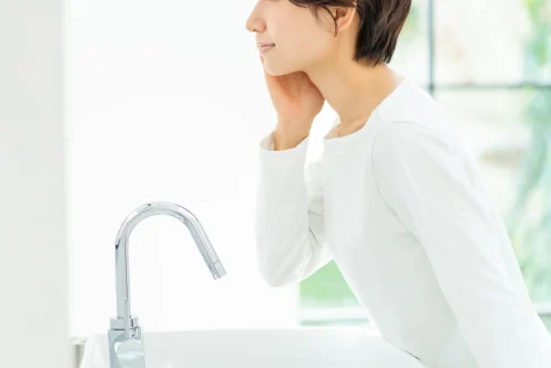 化粧水や美容液などを活用し、肌の乾燥を予防するスキンケアも忘れずに行いましょう。ただし、スキンケアの際に肌を強く擦るとかえって肌が乾燥しやすくなり、たるみを招く原因となるため注意が必要です。
