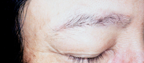眉またはアイラインに入れていることが多いアートメイク。これなら黒に反応するレーザーで簡単に除去することができます。色の濃さや入っている深さによって施術回数は変わりますが、ほとんどの方が2~3ヶ月おきの3~4回の治療でかなり元通りに。中には1回でほとんど取れる場合もあります。
