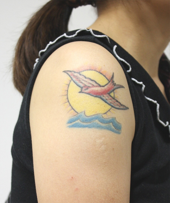 主な入れ墨除去の方法は4種類。色や大きさによって、どの方法が適しているのかはほぼ決まってきます。黒や青の1色の入れ墨は、皮膚の深い部分に濃く入っている場合を除けば、アートメークと同様にレーザーで。そうでないものは新たな傷ができますが、入れ墨を入れていたとはわからない状態にすることができます。