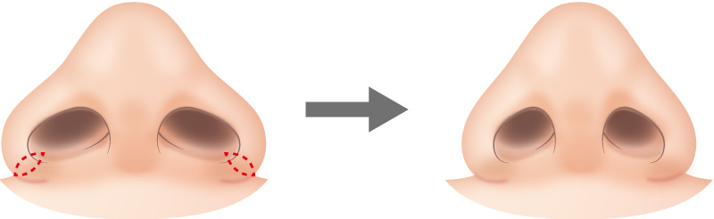 鼻翼縮小小鼻が上や横に大きく広がり、 |