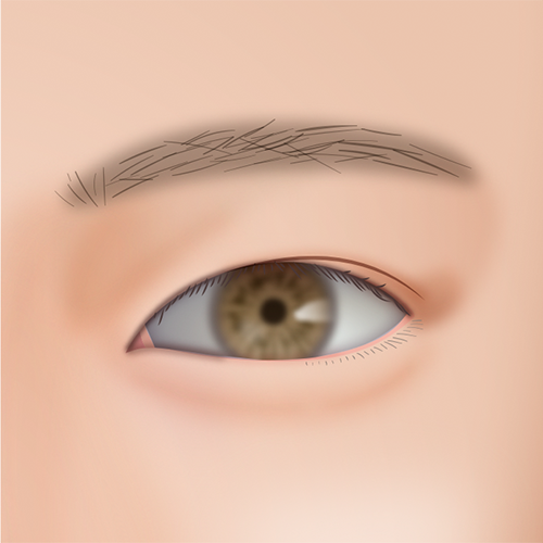 ![]() 大きく、はっきりとした二重まぶた。あるいは一重or奥二重。